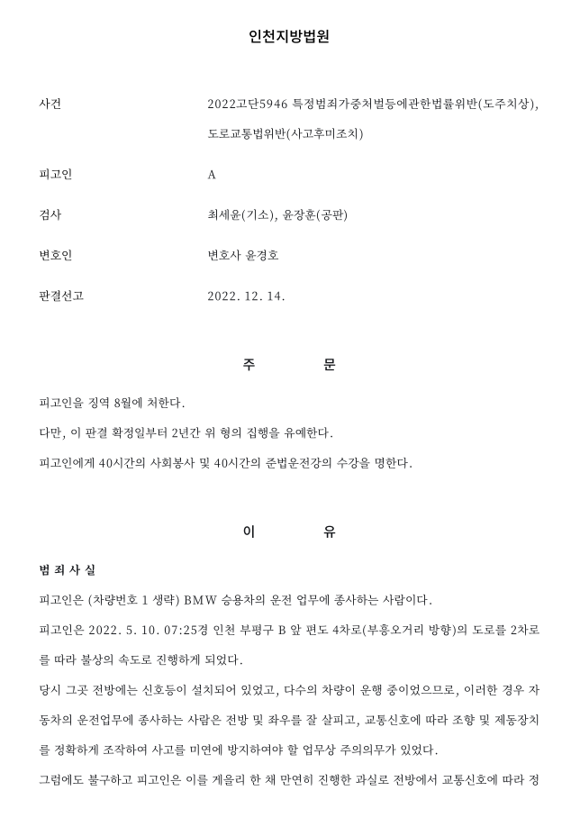 [형사] 뺑소니 집행유예 성공 사례